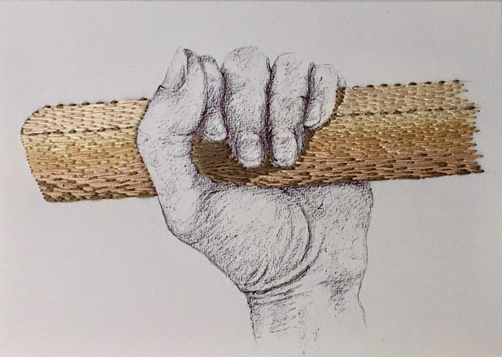 MarieJosé Pillet, Poingbrodé, 2020, bic et broderie, 14,7 X 21 cm
